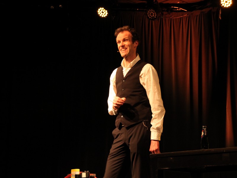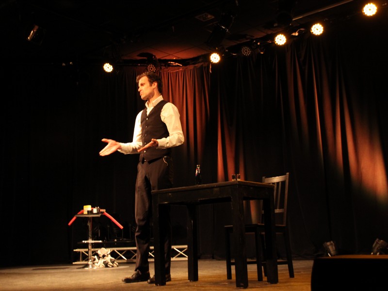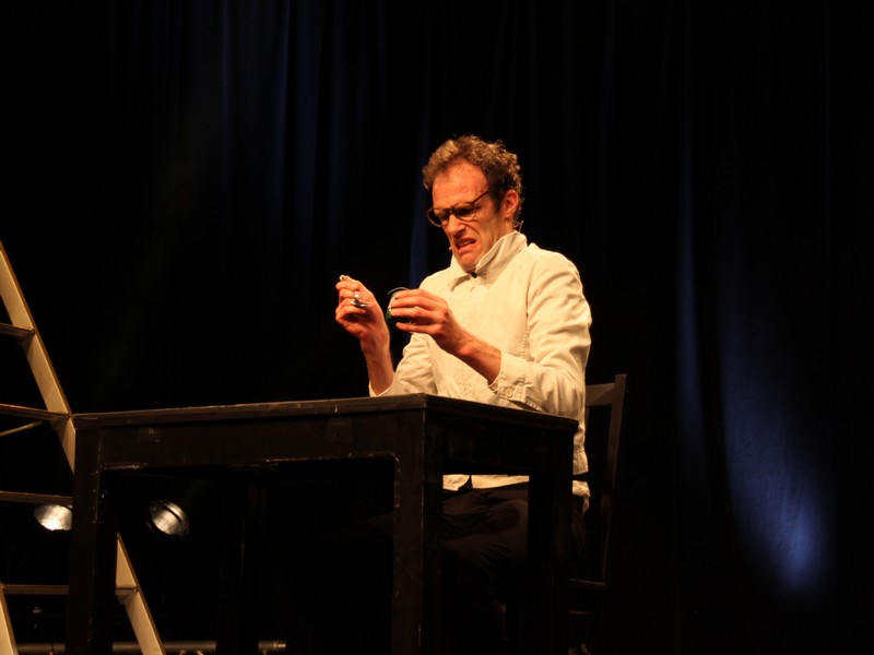 Pendant une heure et demie de sketch il nous a emmené dans son délire de fou normal qui nous ressemble parfois. Egratignant au passage notre société et ses travers à l’aide d’une galerie de personnage tous plus ou moins loufoque, ce clown équilibriste prend tous les risques physiques pour nous expliquer qu’en fin de compte notre vie se passe à montrer, voire démontrer, notre obsession à dire et prouver que l’on existe !