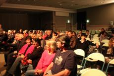 La salle quoique peu remplie a joué le jeu et s’est laissée gagnée par le rire et les exclamations devant la fantaisie de l’artiste lui offrant ses bravos à la fin du spectacle.
