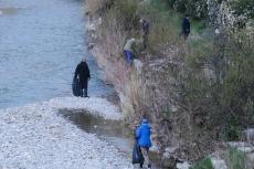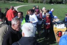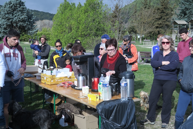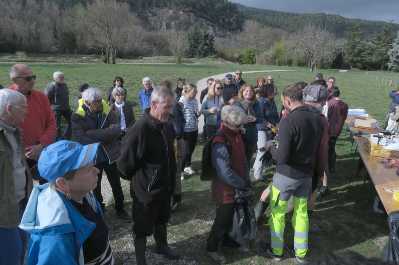 La centaine de participants ont été accueillis à l’espace Théos par le maire et les élus, avec un café de bienvenue. Ils ont reçu gants et sacs-poubelle. Quatre groupes ont été constitués, encadrés par des conseillers municipaux, et se sont réparti les secteurs entre le pont romain et l’espace Théos. Des bennes avaient été installées le long de ce parcours par les services techniques.
