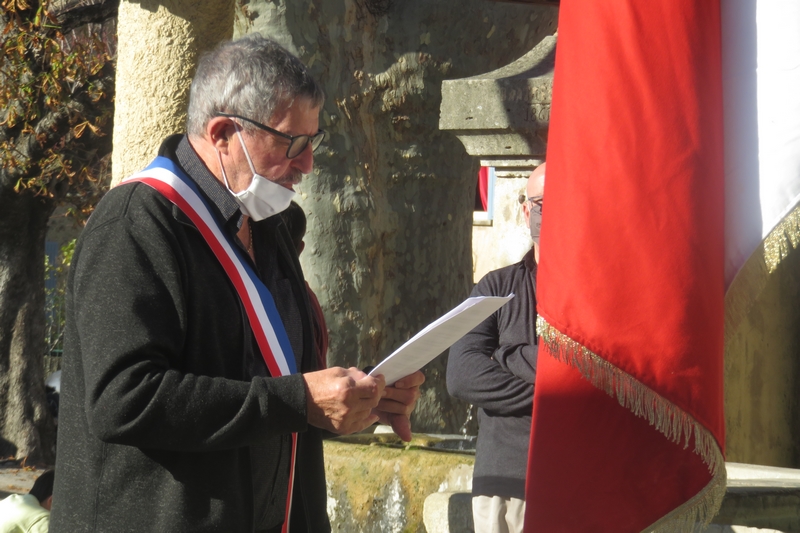 Le maire Roger Trappo entouré d'élus et du porte-drapeau Marc Moinier, a rendu hommage aux 32 morts de Puyméras en tenant un discours portant sur le souvenir nécessaire pour maintenir aussi la paix.