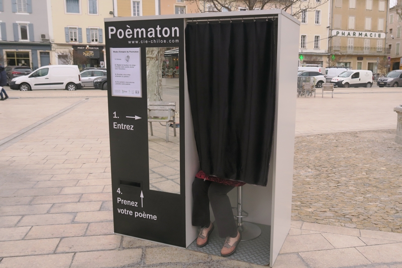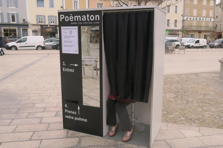 Dans le cadre de la manifestation nationale « Le printemps des poètes 2022 », qui se déroule du 12 au 28 mars, un « poématon » a été installé sur la place Montfort. Inspiré des Photomatons, cette cabine permet d’écouter un poème, et ensuite d’en recevoir le texte. Elle a été imaginée par Isabelle Paquet, qui voulait « créer des conditions d’écoute de la poésie contemporaine, peu connue », pour la démocratiser.