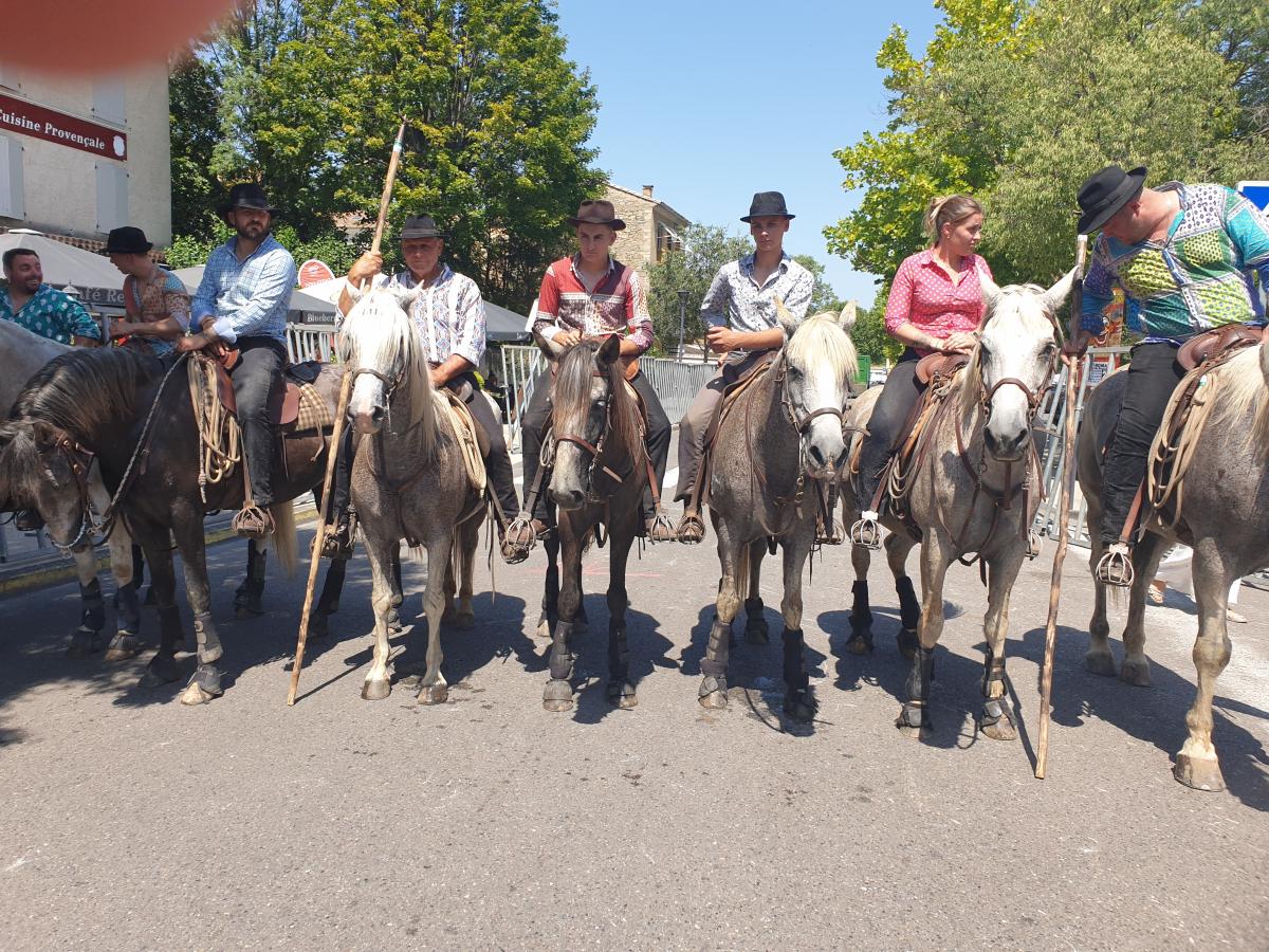 Après un petit déjeuner offert par l’association taurine au bar du Casino, l’abrivado a fait le plein de spectateurs. Des centaines s’étaient regroupées derrière les barrières de sécurité installées tout le long du parcours. Une nouveauté cette année, le parcours partait du milieu du cours des Isnards et prenait la rue du Maquis. Trois équipes « d’attrapaïres » (2 de Malaucène et 1 de Cavaillon) se sont démenées comme des beaux diables pour essayer d’immobiliser la vachette et c‘est l’équipe cavaillonnaise qui a remporté la coupe. L’abrivado s’est terminée par la présentation de la manade, Agu/Martel au son de la « Coupo Santo » interprétée par la Pena Méli-Mélo qui a animé la manifestation tout au long de la journée. Après la fideua dégustée à l’Abri du Ventoux, c’est en fin d’après-midi qu’a eu lieu « L’Encierro » avec toujours autant de spectateurs. Pour terminer la journée, c’est à l’Atelier de la Ferme que s’est tenue une bodega animée par le DJ Cédric. Une belle journée réussie sous un beau soleil grâce au président de l’association taurine, David Barnier et sa nombreuse équipe de bénévoles. L’animation du « Taureau piscine » prévue le dimanche est reportée au dimanche 4 août (horaire non précisé)>.