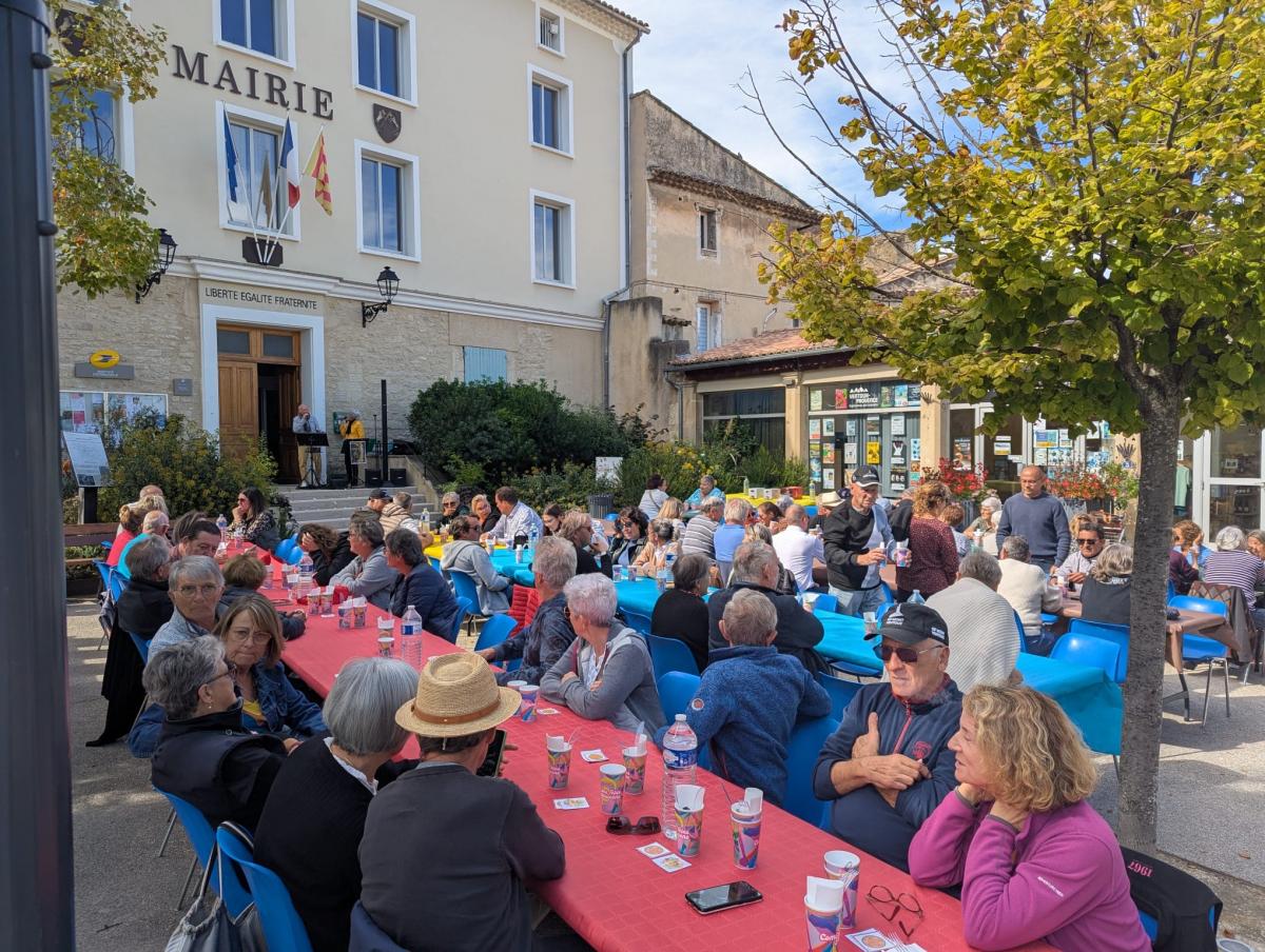 Entre les attractions foraines, les concours de boules et de belote dont les mises étaient offertes par le Comité des Fêtes, pendant ces 4 jours, il y a eu le thé dansant du vendredi qui a réuni les pensionnaires des Ehpad de l’Oustalet et du Centenaire qui ont pu danser sur des airs entraînants grâce au duo de Christelle et Nicolas de « Chris’Anim », puis le soir le quiz animé par Vincent Païta qui a été bien suivi. Si le samedi c’était, belote et boules, le dimanche, le vide-grenier, en faveur du Téléthon, installé avenue du Maquis a réuni une trentaine d’exposants et de nombreux « chineurs ». La randonnée, toujours en faveur du Téléthon, conduite par Liliane et Jean, à la découverte du village et alentours pour un parcours de 7 km, a réuni une vingtaine de marcheurs. Le midi, comme de coutume, le Comité des fêtes est allé offrir des pâtisseries aux résidents des maisons de retraite et c’est sur le parvis de la mairie que le repas dominical a été servi pour une centaine de personnes. Déjeuner musical avec le « Duo Yoda ». On peut juste regretter qu’il n’y ait pas eu de bal le samedi soir et la fermeture de tous les bars car à 21 h 30 c’était le désert sur le Cours… et le spectacle pour enfants du lundi après-midi a aussi manqué. Mais quand même un coup de chapeau au Comité des Fêtes pour leurs animations. Merci à Véronique Rourre, présidente du Comité des Fêtes, pour les photos.
