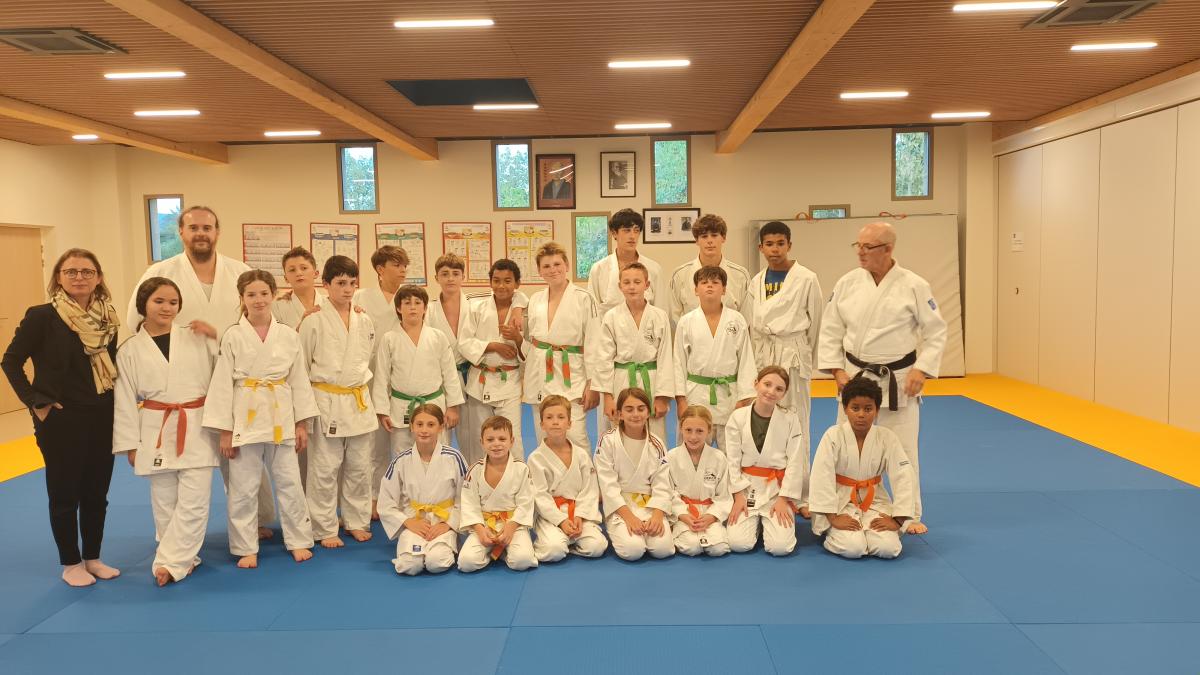 Olivier Arnaud, Patrick Varinard et Laurent Mary piliers du club, ont accueilli Noëline chaleureusement et vous invitent à venir essayer les cours de Taïso (gymnastique douce japonaise accessible à tous) les lundis et jeudis de 18h30 à 19h30. N’hésitez pas à venir faire un essai, que ce soit pour les petits judokas en herbe ou pour les adultes curieux de découvrir une pratique sportive complète et conviviale !
