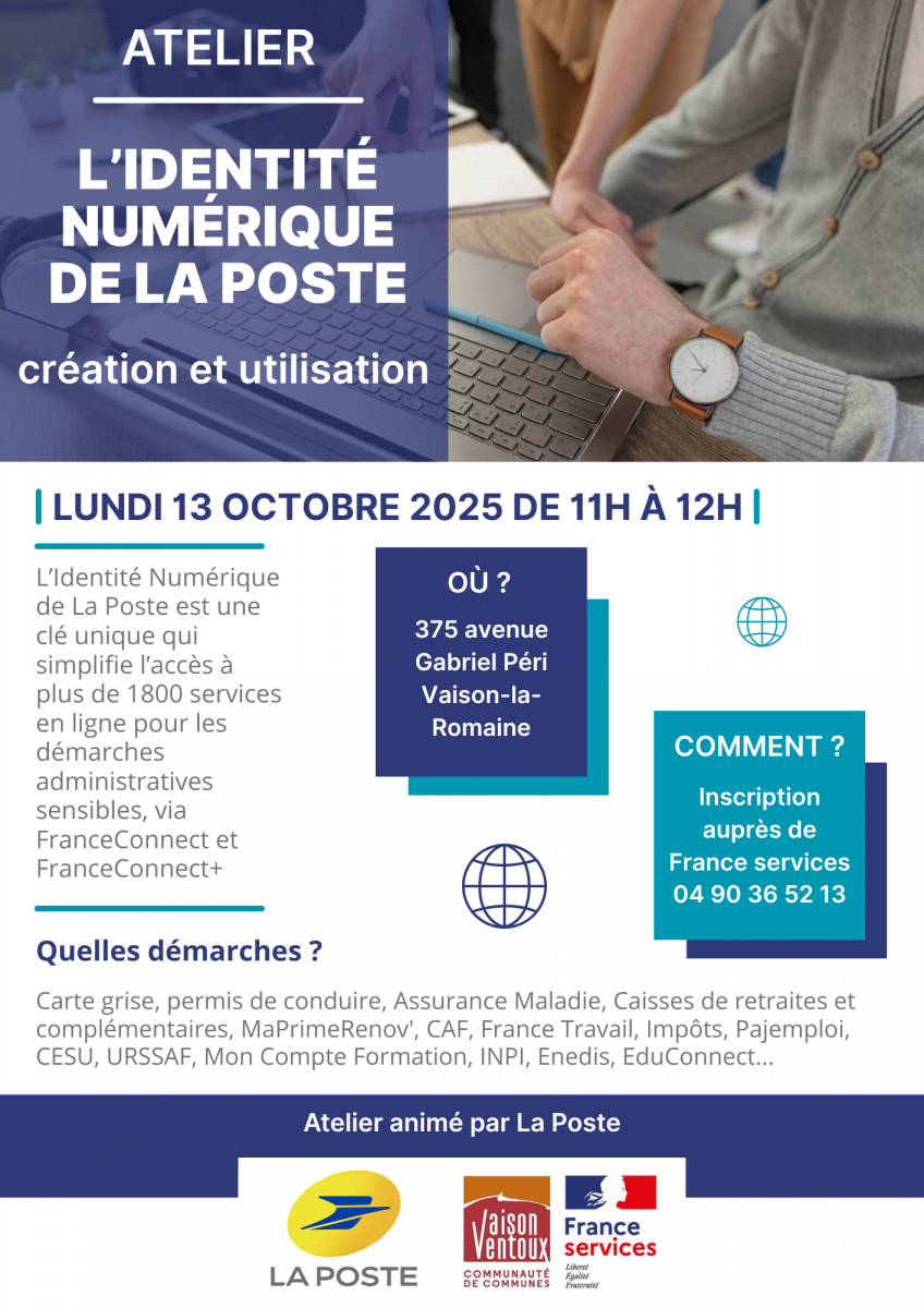 A cette occasion, un programme de rencontres conviviales (accueil café, présentation du service…), d’ateliers et de permanences est organisé, ouvert à tous. L’Espace France Services propose tout au long de l’année un accompagnement gratuit des usagers pour la réalisation de leurs démarches administratives du quotidien, en ligne ou non. Créé depuis 4 ans et hébergé dans les locaux de la Communauté de communes Vaison Ventoux (375 avenue Gabriel Péri à Vaison-la-Romaine), il a accompagné 1 900 démarches administratives sur les douze derniers mois.