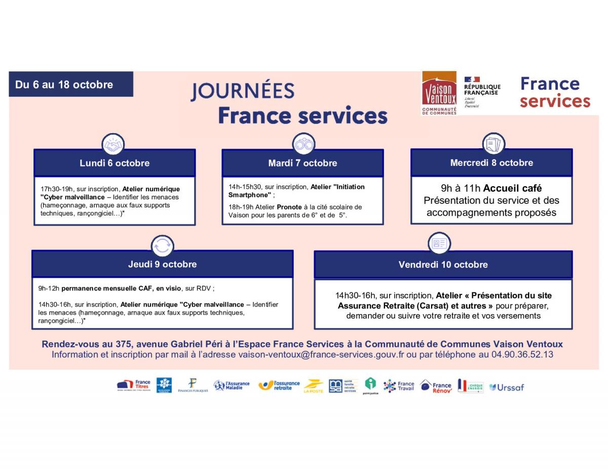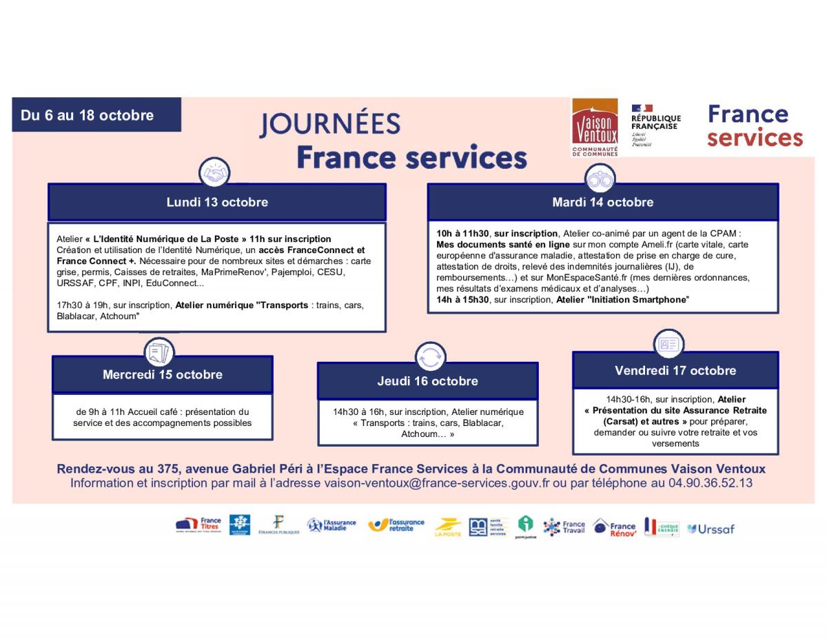 L’Espace France Services Vaison Ventoux organise des Portes Ouvertes du 6 au 17 octobre 2025.