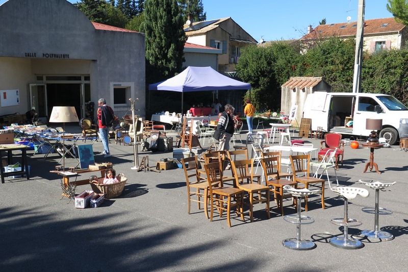 Dimanche, une brocante était organisée à la salle des fêtes du village. Elle s’est beaucoup agrandie par rapport à la dernière édition, avec l’occupation du parking devant l’entrée de la salle.