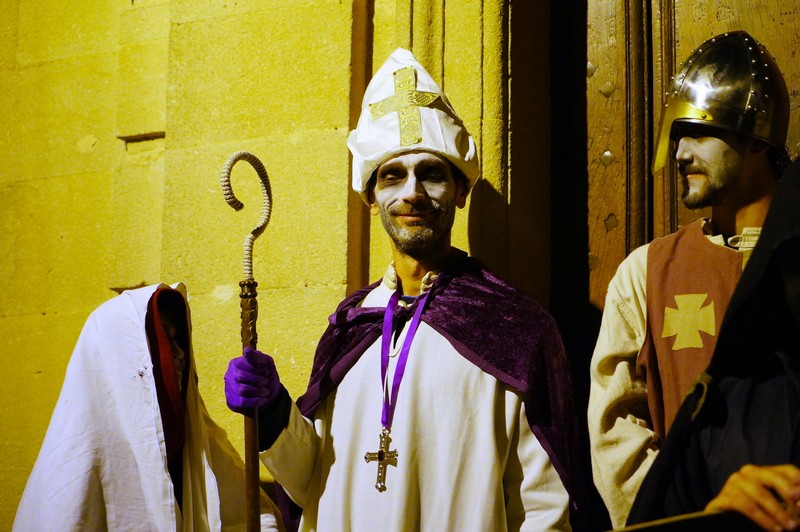 Pour achever ce périple nocturne délicieusement effrayant, la troupe de Mélanie nous conte l’histoire de cette Vaisonnaise amoureuse d’un troubadour du premier comte de Toulouse. Le troubadour dut suivre le comte dans ses conquêtes et la jeune femme l’aurait suivi. Des années plus tard, elle revient enceinte dans la ville et serait morte sur le parvis de la cathédrale. « Certains soirs si vous tendez l’oreille on dit que la petite fille du troubadour joue un air triste pour rappeler ce temps passé ». Et c’est la petite Louna, élève de l’école Zola, qui avec son violon lui rendit un dernier hommage pour terminer cet étrange voyage.