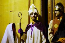 Plus loin la confrérie des Pénitents Blancs traverse la ville, tandis qu’un revenant vaisonnais pauvre comme Job raconte comment il a connu la fortune grâce à un esprit domestique qui a investi sa maison sous la forme d’un chat noir. Isaac Laquedem, le juif errant, n’est pas loin, parlant un sabir mêlé d’hébreu et de patois. Autour du lavoir, la nuit, les « bugadières » de mauvaise vie battent le linge des Vaisonnais pour laver tous leurs mensonges de la journée. À proximité de la cathédrale, Eblon de Meder, cinquième évêque de Vaison, rencontre la Camarde qui lui promet la « bonne mort » pour avoir été généreux avec les Vaisonnais en les recevant tous à sa table lors d’un banquet organisé à l’occasion de son intronisation.