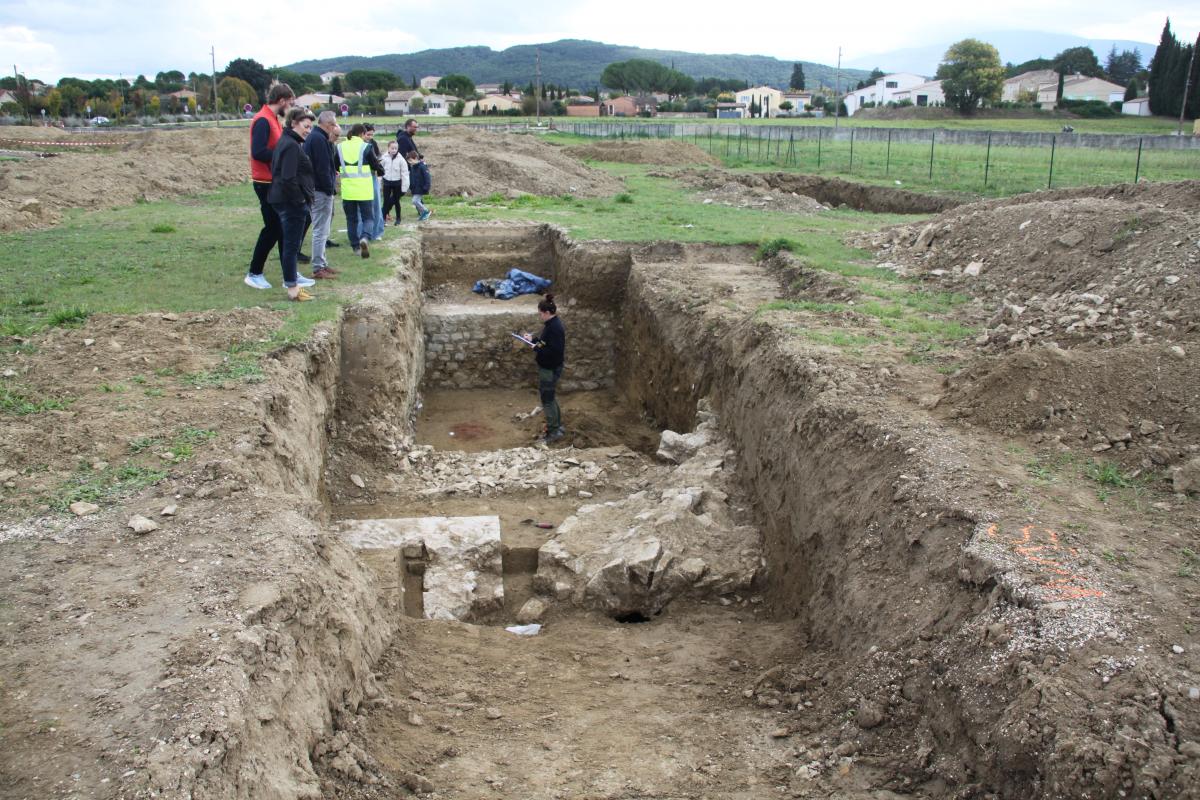 Mercredi dernier 29 octobre a eu lieu une visite, à l'attention de la presse, du chantier de diagnostic archéologique préventif actuellement mené sur un terrain de 7 000 m2 proche des Thermes du Nord et du théâtre antique de Vaison-la-Romaine.