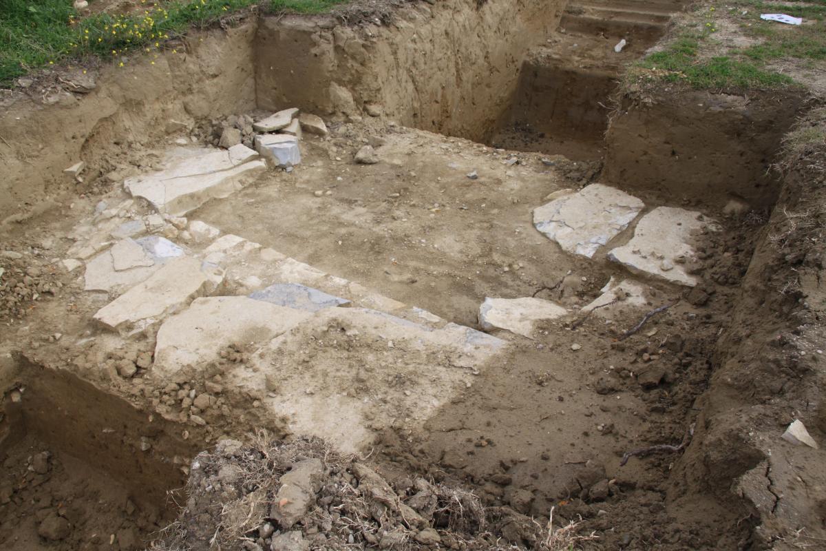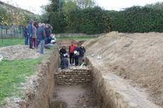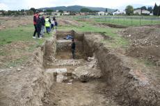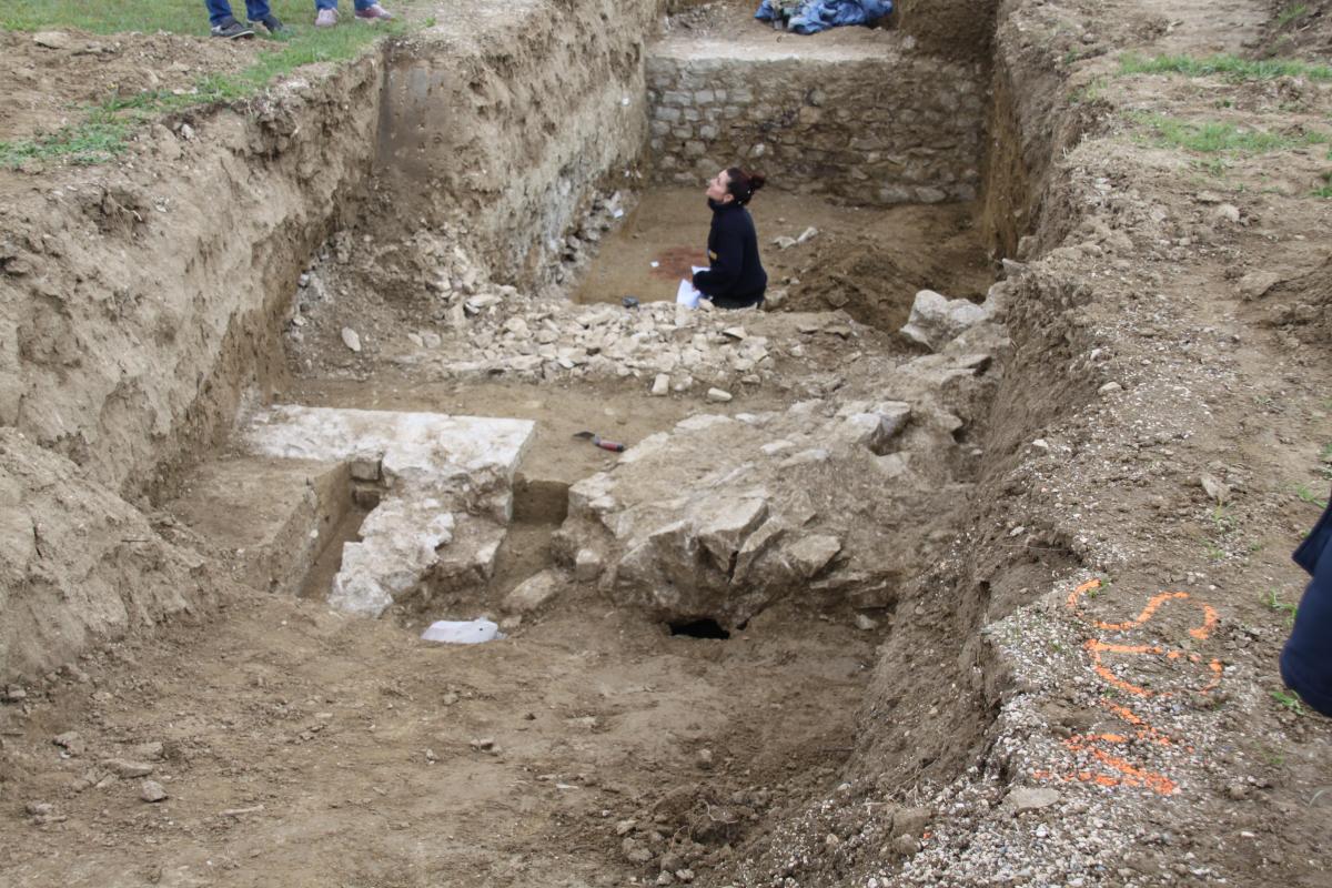 Les premières découvertes datées du 1er au 5ème siècle (du Haut-Empire à l’Antiquité tardive) semblent prometteuses : un dallage, des murs monumentaux, des maçonneries dont une formant une abside, un égout, des fragments de sculptures et quelques tessons de céramique.