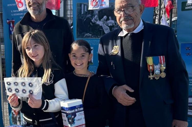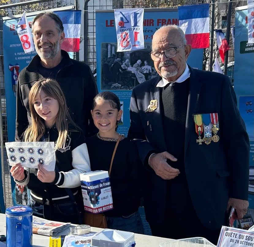 Accompagné de Bruno Soubeyrat, directeur de l’école élémentaire et de deux de ses élèves, ces dernières ont prêté main forte à Abdelkader pour la collecte de fonds en échange du célèbre petit Bleuet de France. Collecte accueillie avec bienveillance par les passants. En France, le Bleuet est le symbole de l’hommage de la Nation français aux soldats morts pour ses idéaux. Aujourd’hui, cette fleur qui incarne les valeurs de respect, de paix et de tolérance chères à l’ensemble de la communauté combattante rend aussi hommage aux victimes d’actes de terrorisme et permet de transmettre le devoir de mémoire aux jeunes générations.