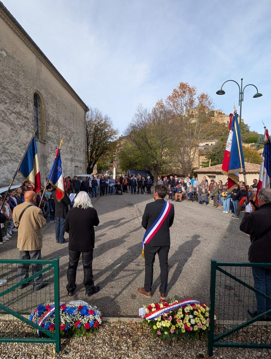 Après les dépôts de gerbes et les discours lus par le maire Alexandre Roux et par Philippe Vaysse, fils du président des Anciens Combattants d’Entrechaux Georges Vaysse, s’en est suivi un moment très émouvant avec les enfants qui ont lu des extraits de courriers écrits par les fils à leurs mères durant cette affreuse guerre.
