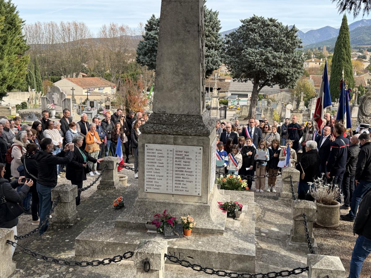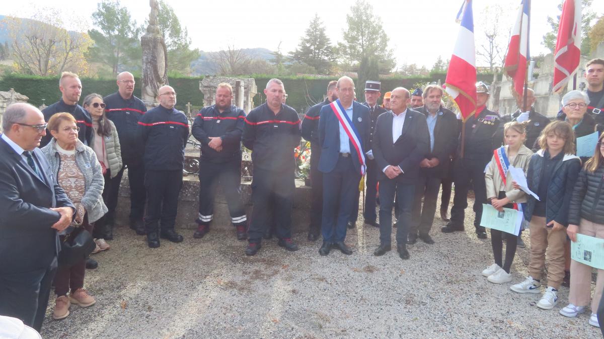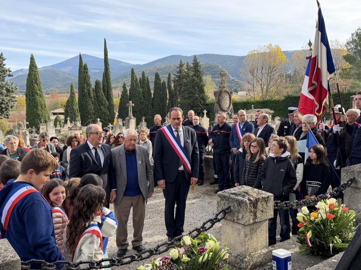 Le maire, Frédéric Tenon, était accompagné par Joël Blanc, président des Anciens Combattants de Malaucène, Beaumont du Ventoux et Le Barroux, de plusieurs élus, du maire honoraire Dominique Bodon, de l’ancienne maire Bernadette Laporte, d’Alain Brémond, maire de Beaumont du Ventoux, de l’adjudant chef Philippe Dauge, nouveau chef de la brigade de Gendarmerie de Malaucène, du père Zbigniew Wojciechowski, des représentants de la Police municipale, des pompiers, du Comité Communal Feux de Forêt et des trois porte-drapeaux et d’une vingtaine d’écoliers malaucéniens.