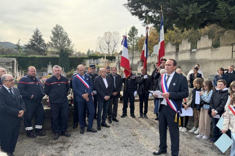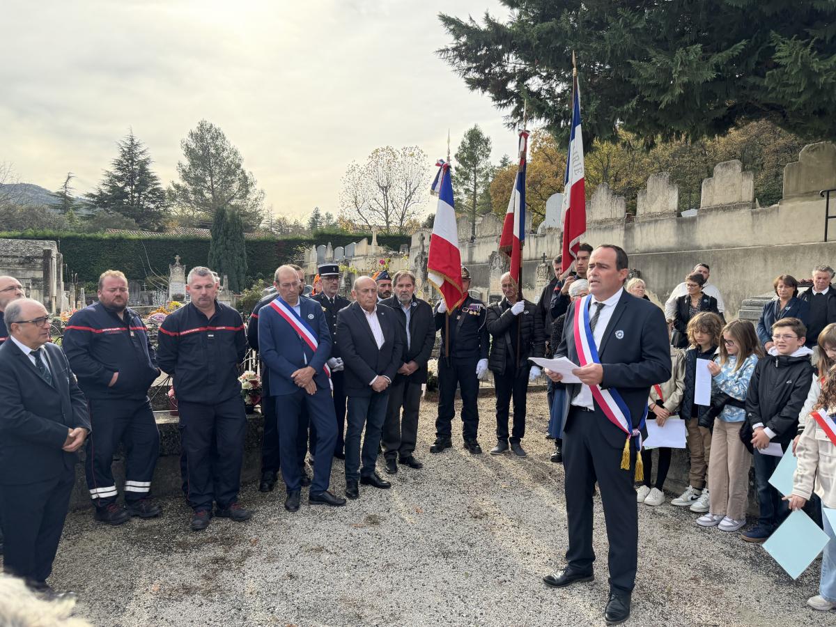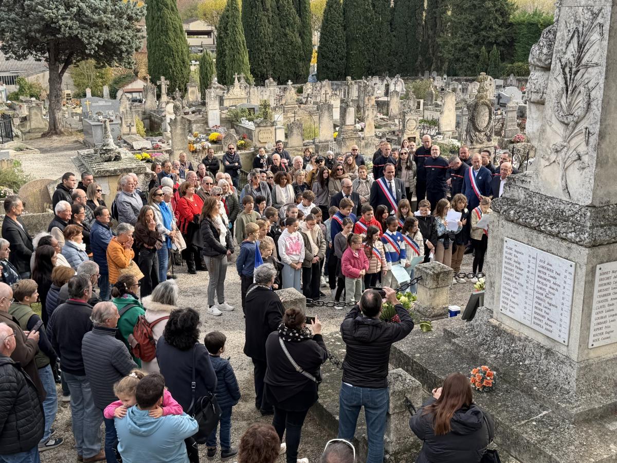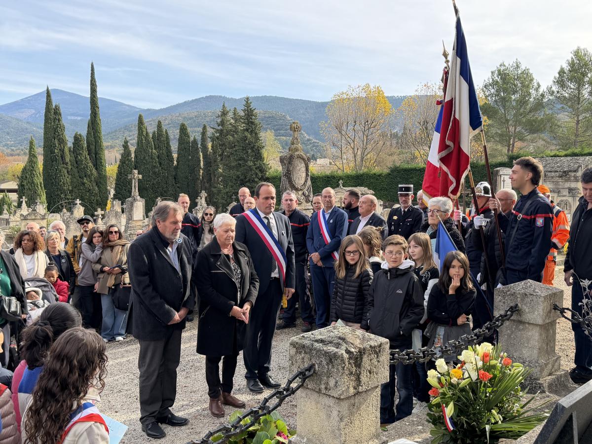 Le maire, Frédéric Tenon, était accompagné par Joël Blanc, président des Anciens Combattants de Malaucène, Beaumont du Ventoux et Le Barroux, de plusieurs élus, du maire honoraire Dominique Bodon, de l’ancienne maire Bernadette Laporte, d’Alain Brémond, maire de Beaumont du Ventoux, de l’adjudant chef Philippe Dauge, nouveau chef de la brigade de Gendarmerie de Malaucène, du père Zbigniew Wojciechowski, des représentants de la Police municipale, des pompiers, du Comité Communal Feux de Forêt et des trois porte-drapeaux et d’une vingtaine d’écoliers malaucéniens.