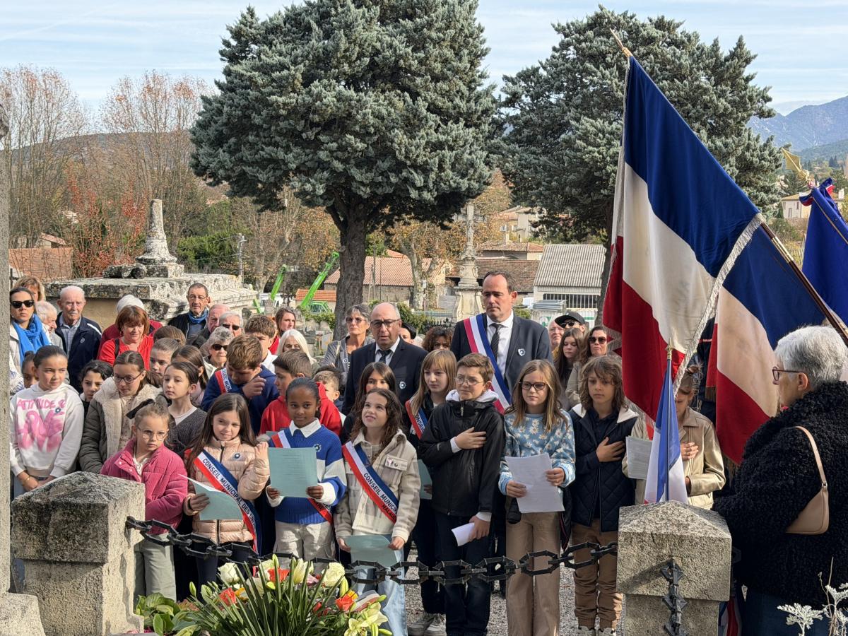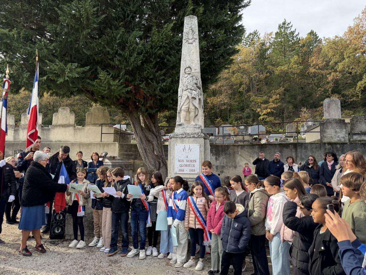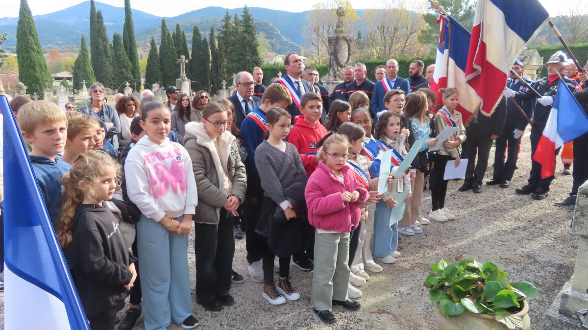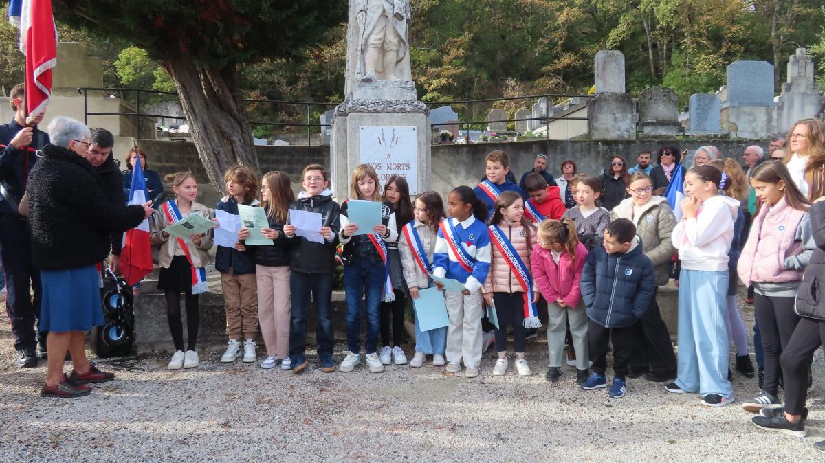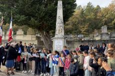 Après le recueillement devant le monument aux Morts pour la France, les écoliers ont entonné la Marseillaise. Un moment chargé d’émotion de les voir chanter notre hymne national « par coeur ».