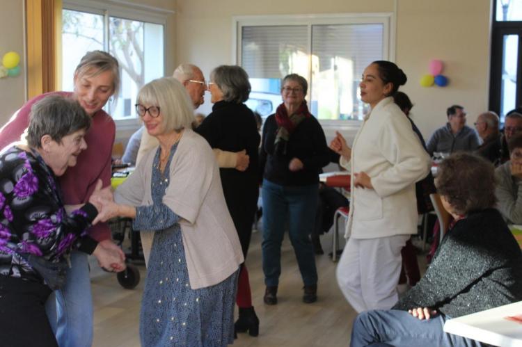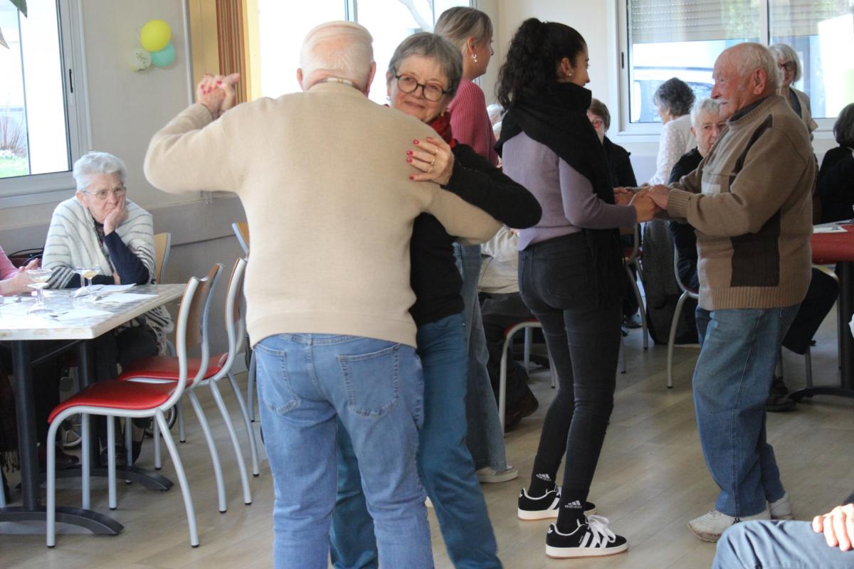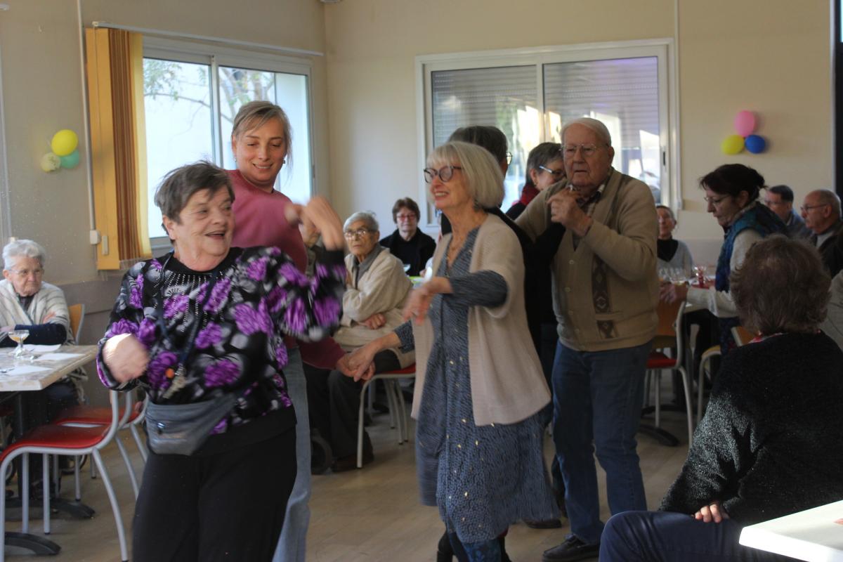 Une chanteuse et un chanteur guitariste "Silver Duo", dynamique et professionnel, ont entonné des chansons qui ont accompagnées les résidents depuis leur tendre jeunesse et qu'ils ont reprises en cœur. Rapidement ils se sont lancés sur la piste de danse accompagnés par des membres du personnel, au rythme du paso doble, du twist,du tango et les rires, les applaudissements ont engendré une cacophonie agréable et festive.