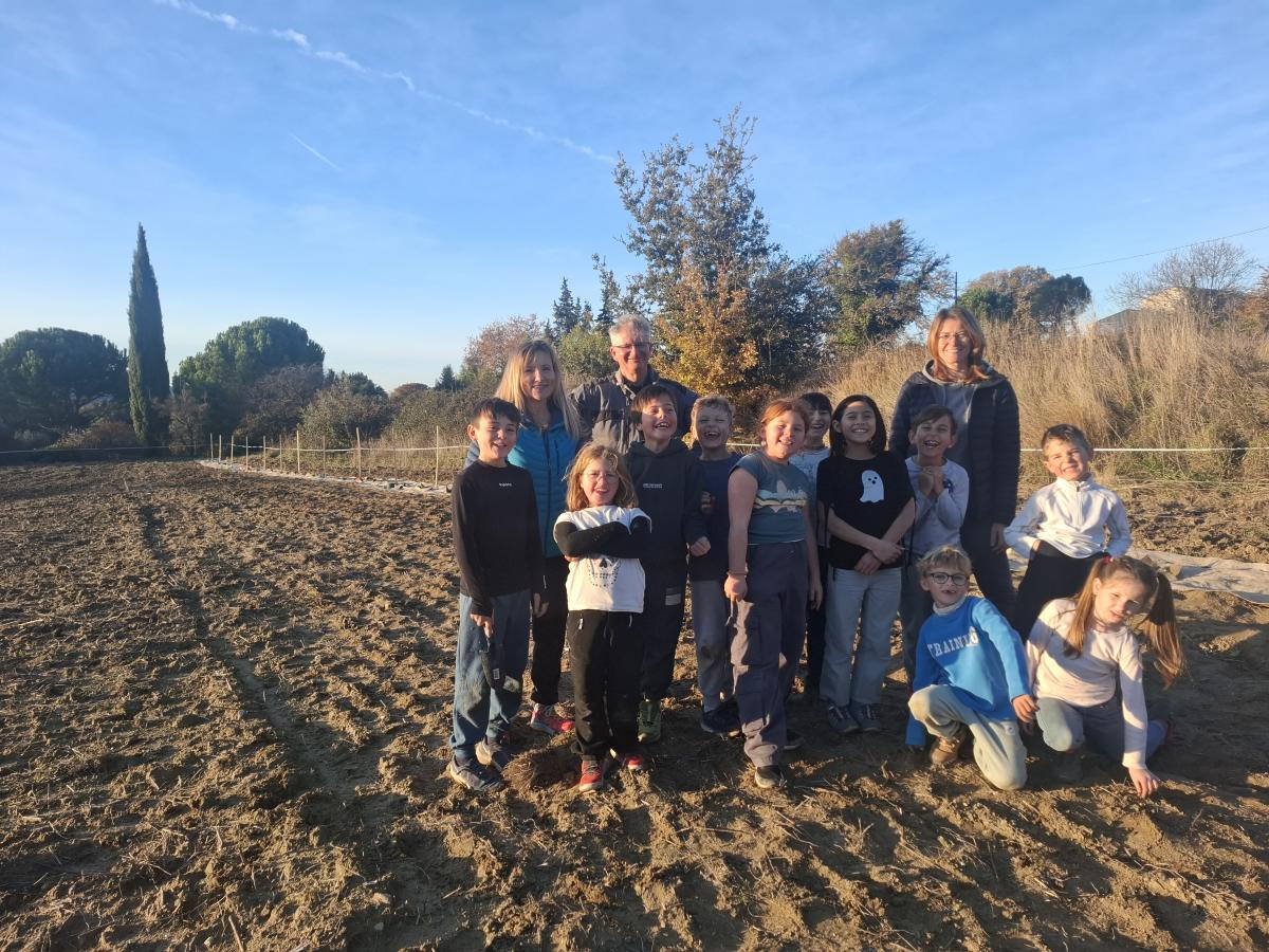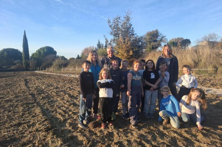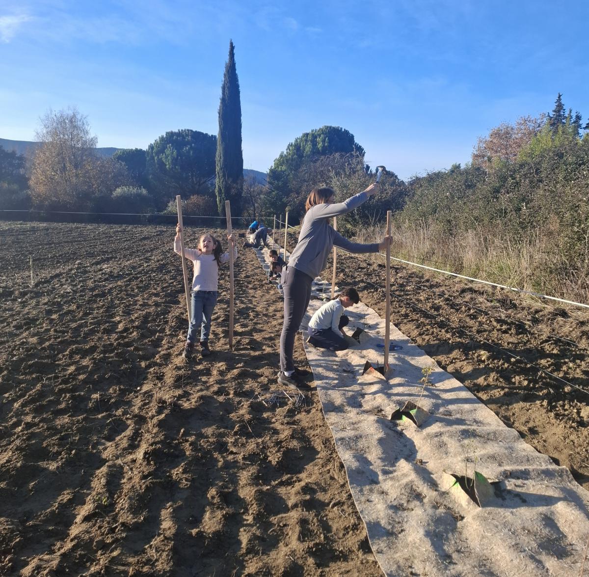 Bénéficiant d’une journée bien ensoleillée, les 11 écoliers de la classe unique d’Émilie Trolet sont allés planter une haie chez Serge Duckit, agriculteur malaucénien, à la ferme des vergers du mas de la Sainte Famille, dans le cadre d’un partenariat avec l’association « Des Enfants et des Arbres ».
