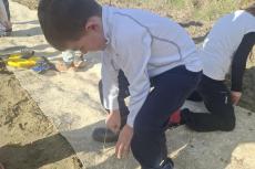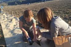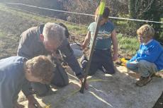 Entourés de leur enseignante, de Sandrine l’AESH, de Pauline en charge du périscolaire, tous sont d’abord partis à pieds, puis ont pique-niqué sur le site avant de commencer la plantation d’une haie suivant les conseils et avec l’aide de Serge Duckit.