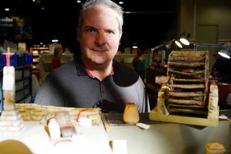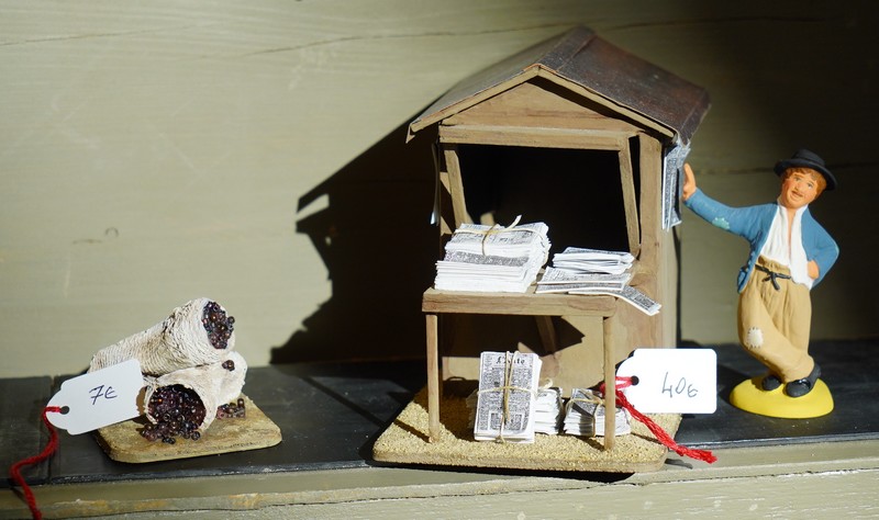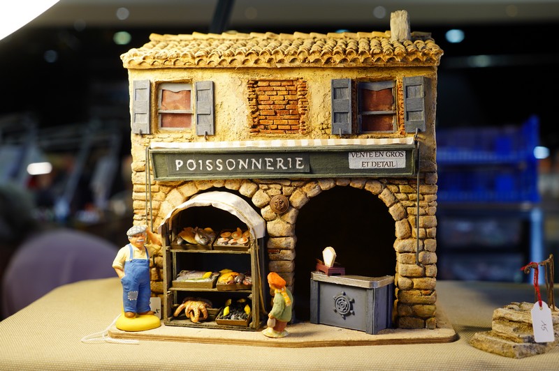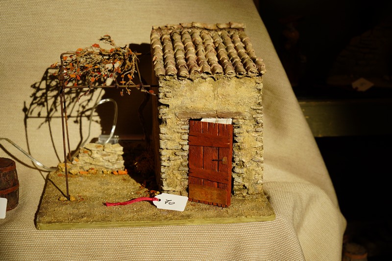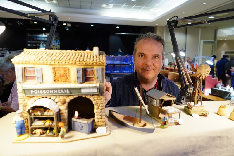 « Je suis créchiste-accessoiriste et je fais les bâtiments. Je suis très inspiré par les créchistes italiens et espagnols. Je pars de structures en plâtre moulé. Ma singularité, c’est l’utilisation de produits naturels pour les teintes. Je rehausse par des lavis beiges ou autres. C’est quelque chose qui ne s’apprend pas dans les livres ; et, par exemple, le grand créchiste Gérald Roux de Carpentras m’a beaucoup appris. Je travaille par thème. La première année, j’avais travaillé sur le thème de l’eau, puis sur l’olive. Ça demande énormément de documentation. C’est un long travail de recherche, mais c’est ma passion et on fait ça sur le temps libre. Je suis historien de formation. La période qui m’intéresse, c’est entre 1850 et 1914. »