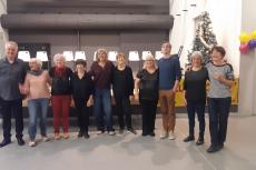 Dès l’entrée dans la salle polyvalente, il y avait le stand du « Temps Retrouvé » où sa présidente, Annie Chave et plusieurs bénévoles de l’association proposaient à la vente des objets décoratifs de Noël qu’ils avaient réalisés et du plus bel effet. Celle-ci a débuté par le concert « d’Entrechaux Vocalise » sous la direction de Lionel Chayas avec une vingtaine de chansons de variété française et quelques chants de Noël. Il y a eu le concours de soupes pour lesquelles un jury de 4 personnes a dû choisir les 3 meilleurs sur les 10 présentées avec le premier prix pour Els et sa soupe flamande teintée de provençal – le deuxième prix est allé à Lydie avec une soupe aux champignons – et le troisième prix pour Fabienne et sa soupe aux moules. Après une restauration autour d’une assiette anglaise, c’est Lionel Chayas qui a repris son accordéon pour animer la soirée. Daniel Guillet, coordinateur du Téléton entrechalais déclarait : « Cette soirée, dans une ambiance chaleureuse à souhait a dépassé nos espérances en faisant remonter à l’AFM Téléthon plus de 900 € ».