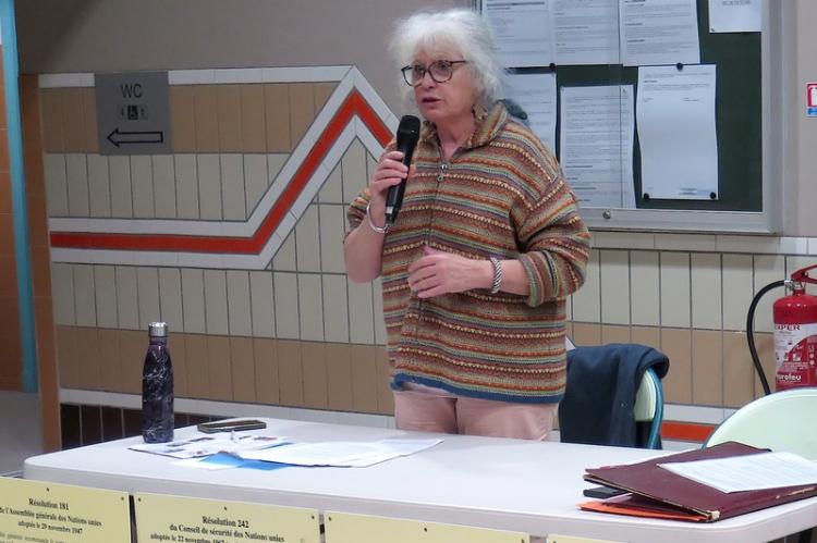 L’Espace culturel accueillait mardi soir Mireille Sève, présidente de l’antenne de France Palestine Solidarité dans les Alpes de Haute Provence. Elle a structuré son intervention en trois parties. Dans un premier temps, elle a présenté le passage de l’Empire ottoman à l’État d’Israël. Elle a ensuite traité des conflits entre Israël et ses voisins, et des relations entre Israël et les habitants de son territoire et des territoires occupés, rappelant les résolutions de l’ONU restées sans effet. Dans la troisième partie, elle a voulu justifier ou réfuter juridiquement les accusations de génocide, de terrorisme et de crimes de guerre des deux parties, avant un débat avec la quarantaine d’auditeurs venus l’écouter.