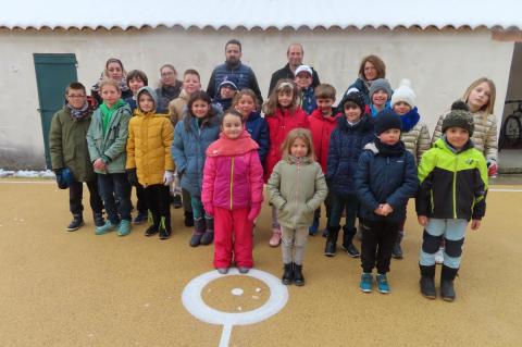 En effet, la cour de l’école avait bien changé. Elle a été entièrement revêtue d’un sol souple avec motifs d’un terrain de sport et d’un jeu de marelle joliment coloré. Des travaux réalisés par la société Européenne Techniques Diffusion (ETD).
