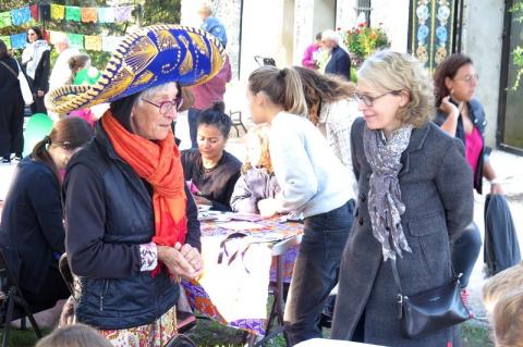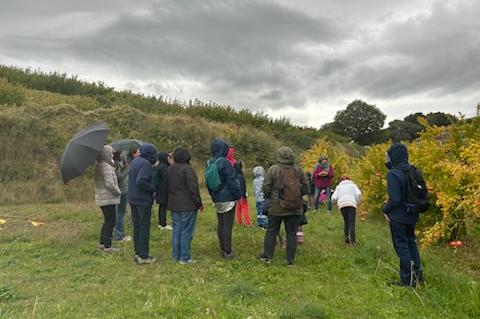Près d’une vingtaine de personnes ont suivi la conteuse dans les vergers de grenadiers de Coralie et Damien Arnaud où Coralie a expliqué en détail la culture des grenadiers, entrecoupée par les contes de Chantal.