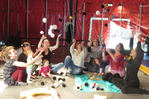 De 10 heures à midi, Agathe (22 mois), Hannaël et Yael (11 mois) ont découvert des jeux avec des pompons, des foulards, des tunnels avec Noëlle, Ambre, Sandra et Véronique, animatrices.