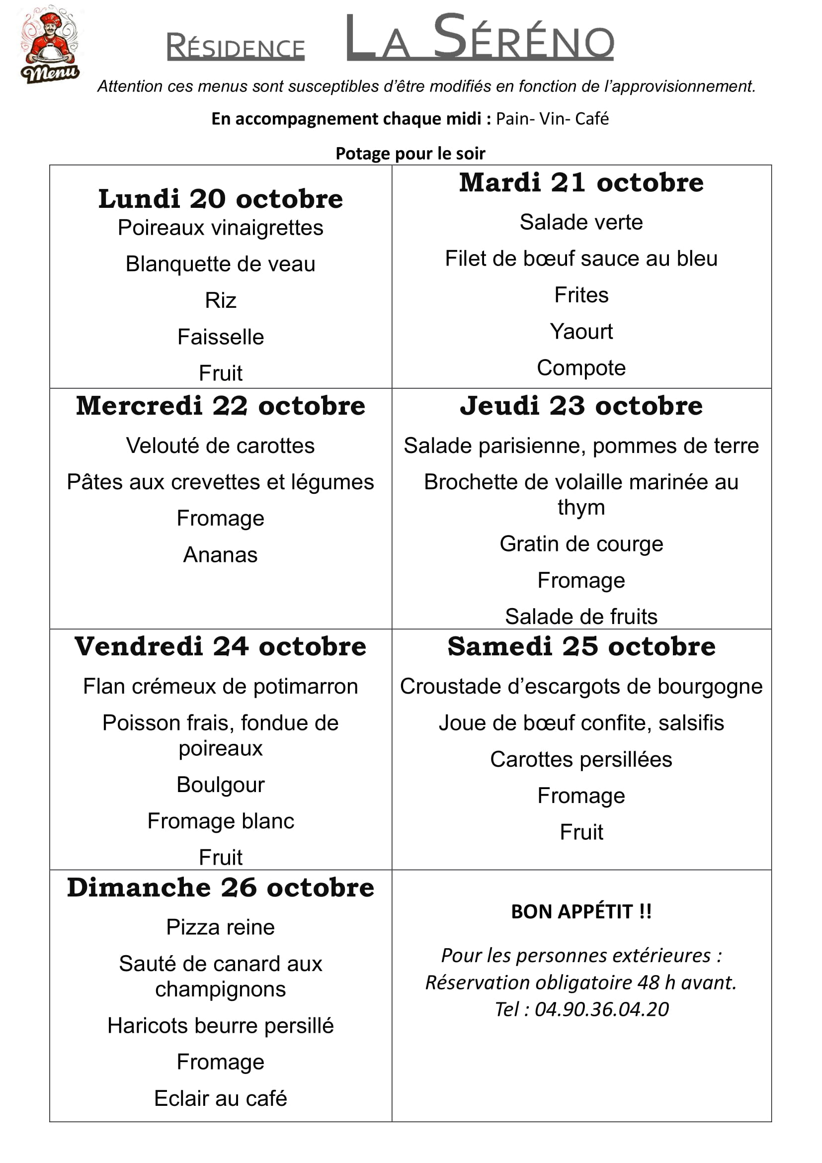 Soumis par Elie Coptair le mer, 10/09/2025 - 10:51 DiversResto menu_du_20_au_26_octobre_2025-1.jpg Contact: 04.90.36.04.20