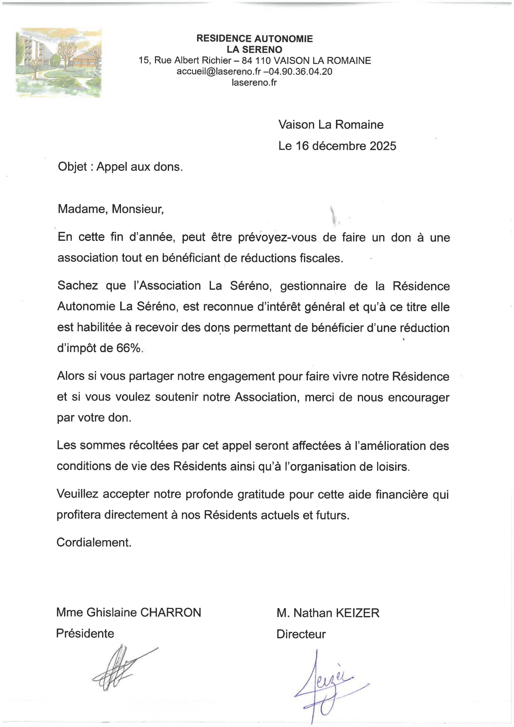 Soumis par Elie Coptair le jeu, 18/12/2025 - 11:09 DiversAutre appel_dons_2025-1.jpg Contact: La Séréno